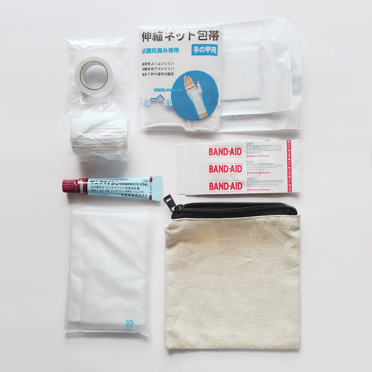 軟膏、絆創膏、ガーゼ、包帯、ティッシュ…。