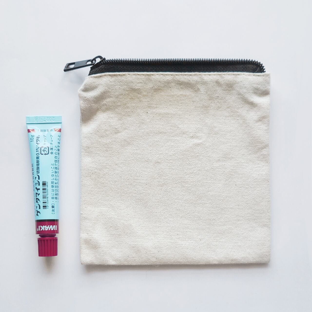 ミニマムサイズの正方形のポーチに SO SHIBAロゴをあしらいました。