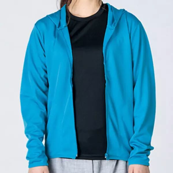 吸汗速乾性に優れたドライメッシュ素材を使ったジップフーディ。
