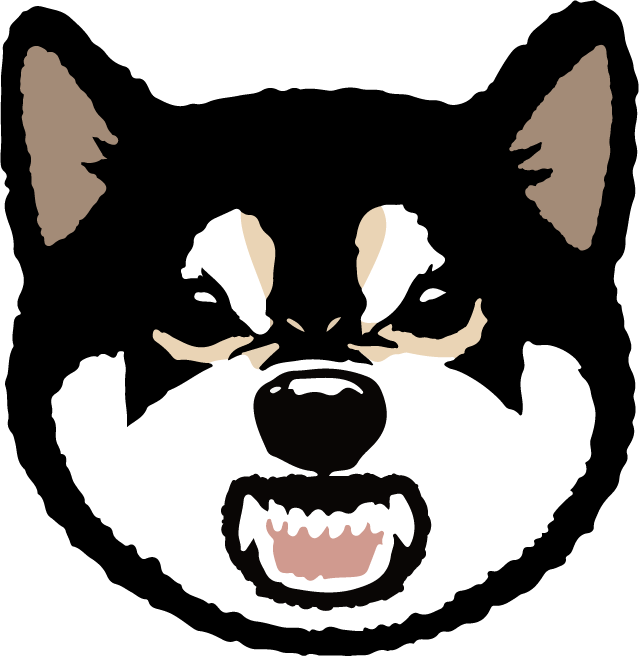 これでもかというサイズのムキムキ顔の柴犬に背中を任せれば、背後の敵にも威嚇十分です!