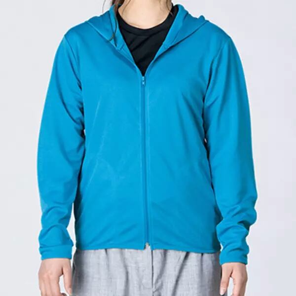 吸汗速乾性に優れたドライメッシュ素材を使ったジップフーディ。