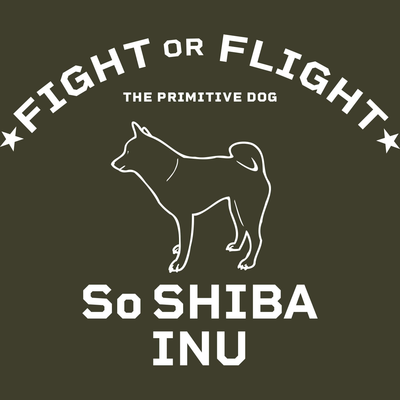 そんな闘争と逃走寸前の柴犬らしい空気をまとったシルエットをグラフィカルかつカジュアルに表現したTシャツです。