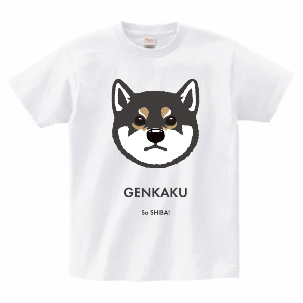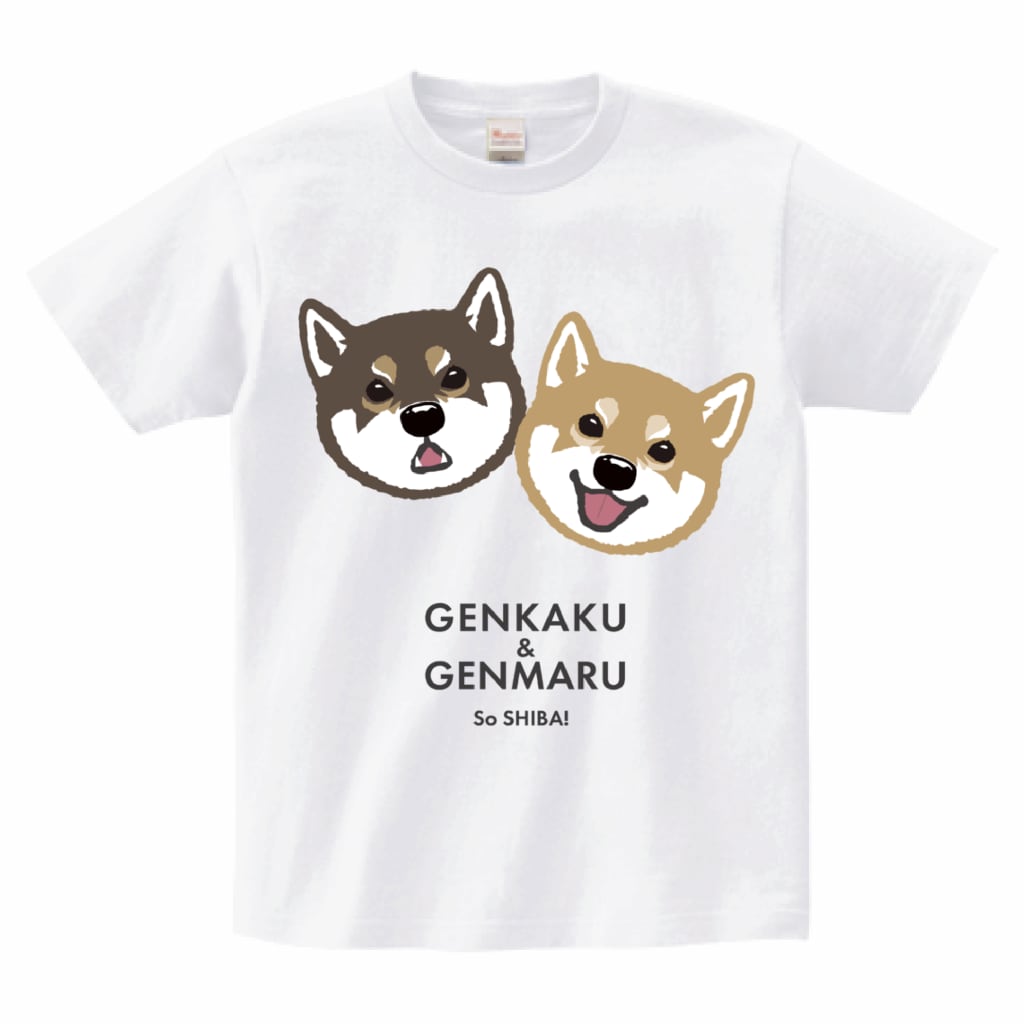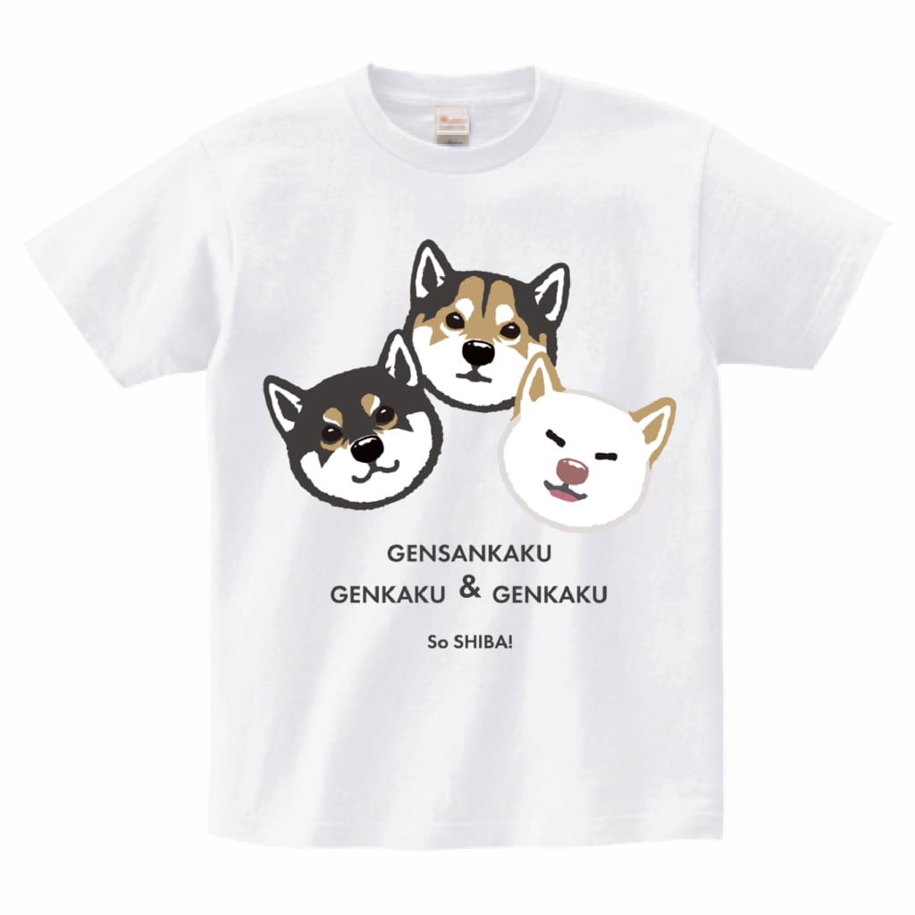 柴色5種(アカ・クロ・シロ・ゴマ・ミケ)×表情7種から選択いただき、最大3頭まで配置可能な名入れTシャツ。ボディ(Tシャツ)のカラーも5col用意!