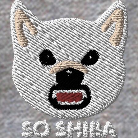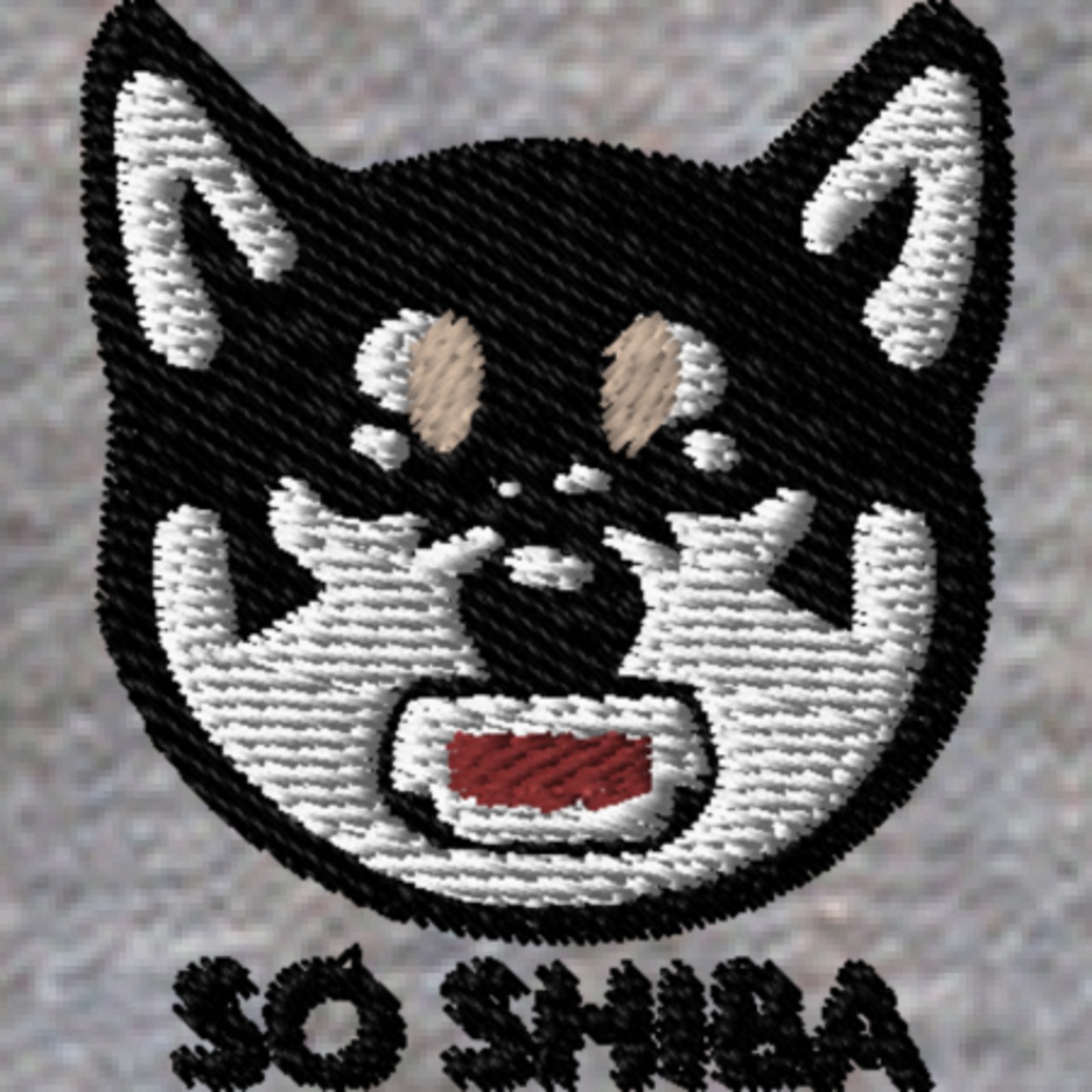 デフォルトには柴顔の下に「SO SHIBA」ロゴ刺繍が入りますが、代わりに名入れにすることが可能です。(有料)