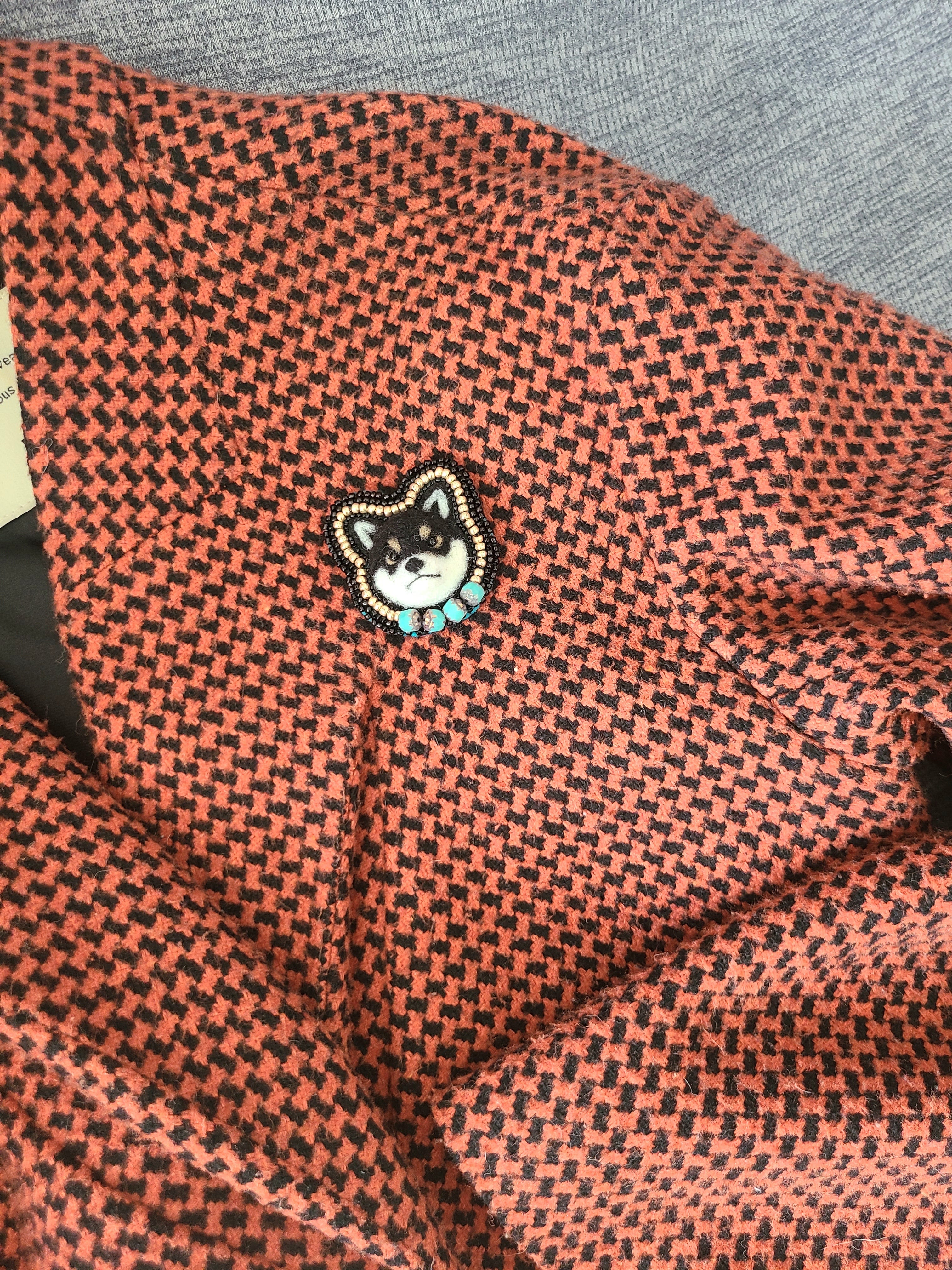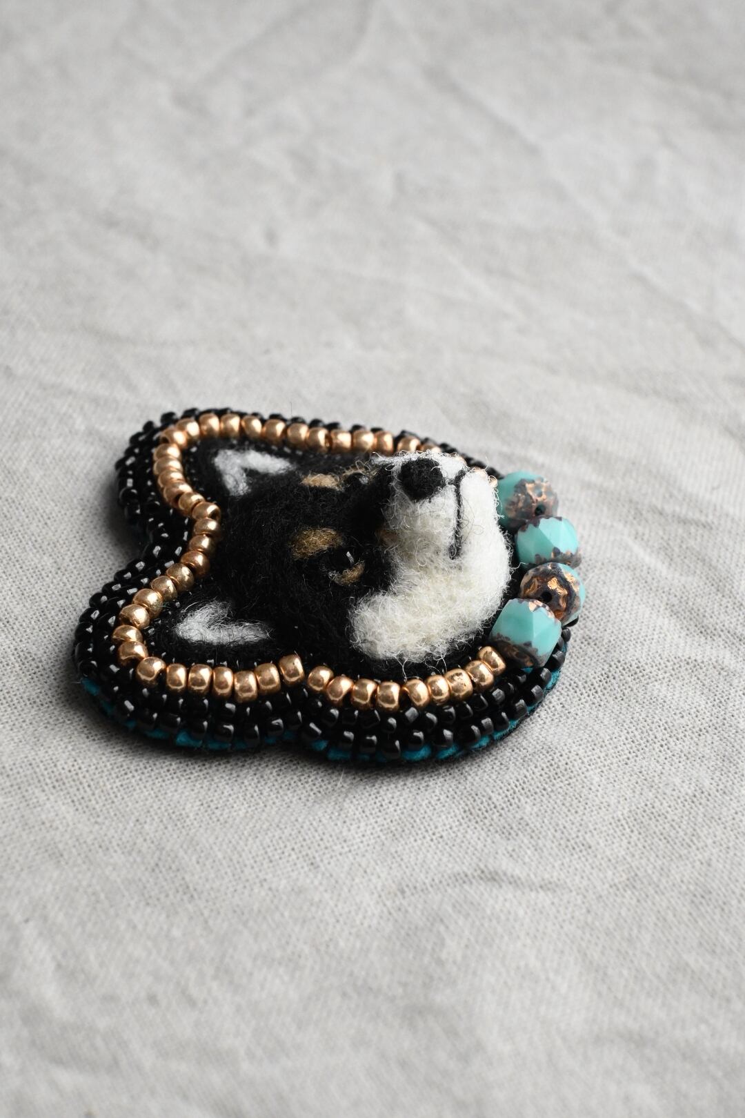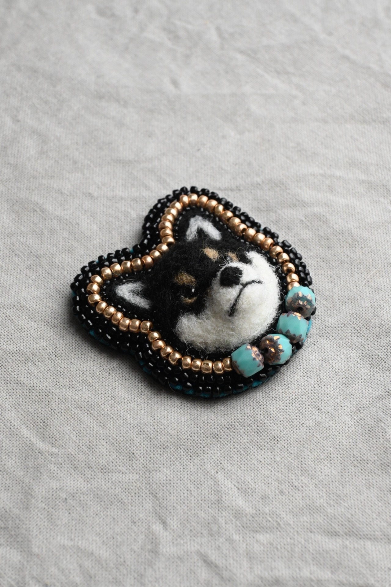 ※ブローチピンやビーズ、天然石を使用しております。ウールの匂いに柴犬が引き寄せられる可能性がございますが、柴犬に取られないように御注意ください。誤飲ダメ絶対。