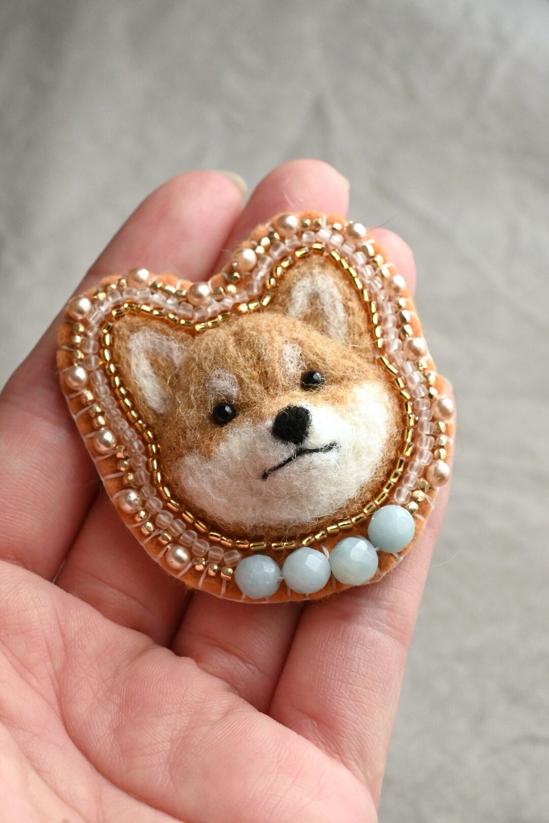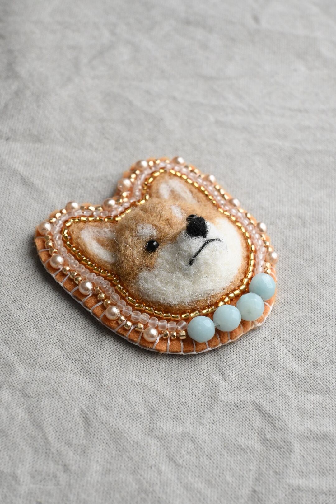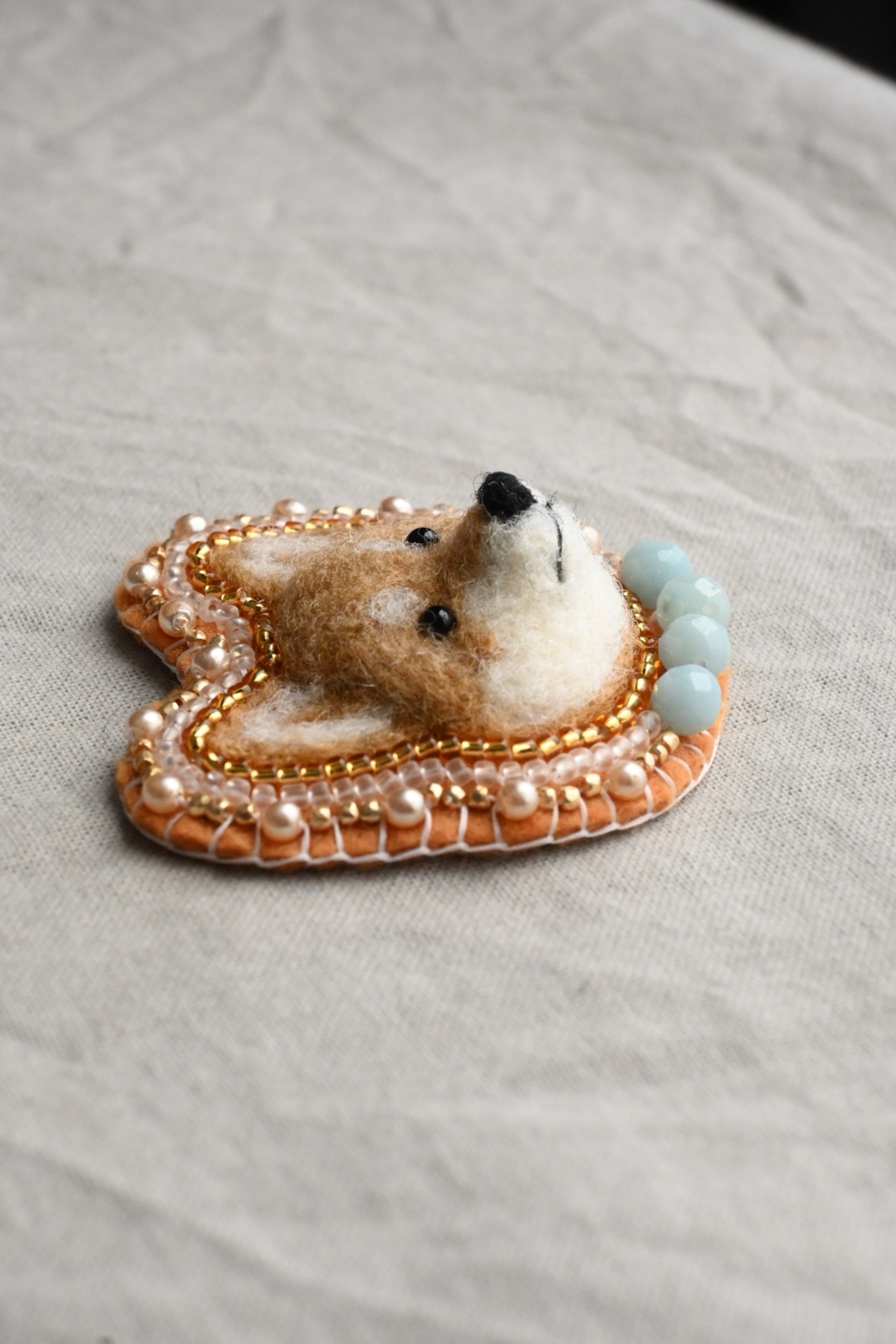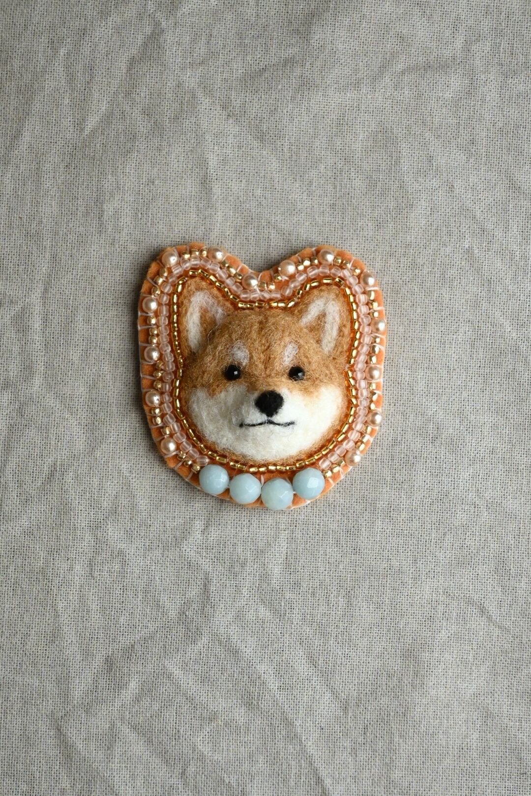 ※ブローチピンやビーズ、天然石を使用しております。ウールの匂いに柴犬が引き寄せられる可能性がございますが、柴犬に取られないように御注意ください。誤飲ダメ絶対。