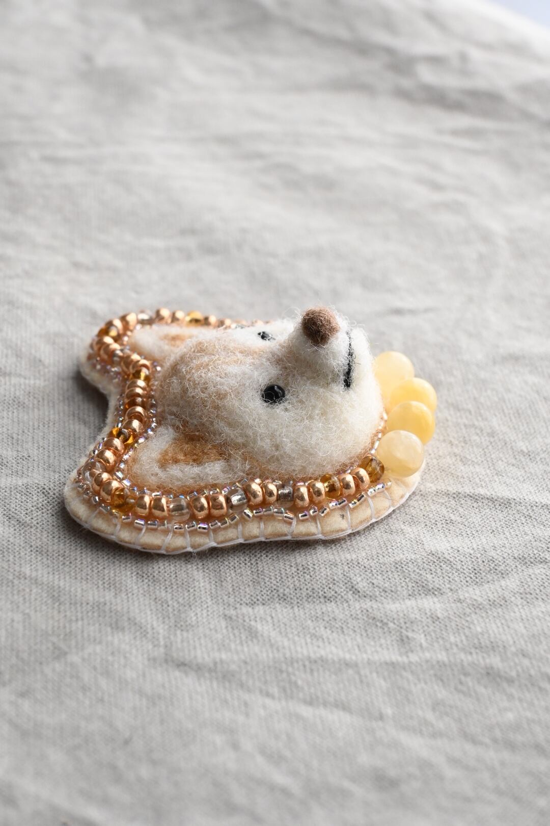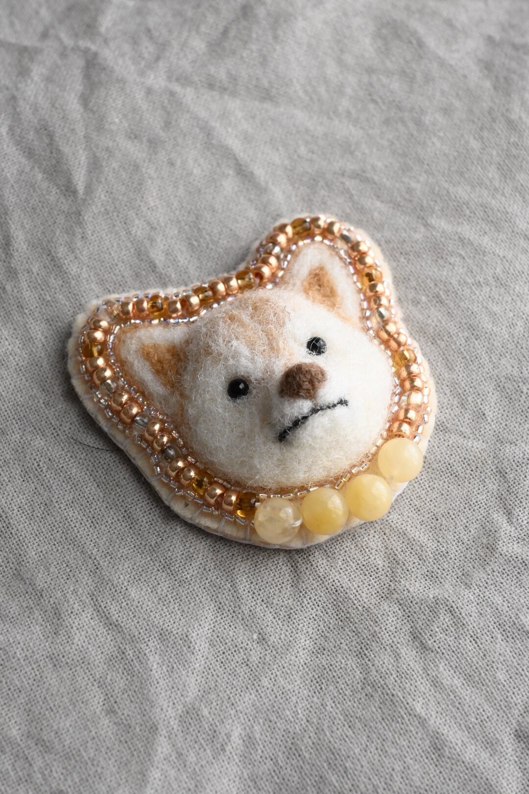 ※ブローチピンやビーズ、天然石を使用しております。ウールの匂いに柴犬が引き寄せられる可能性がございますが、柴犬に取られないように御注意ください。誤飲ダメ絶対。