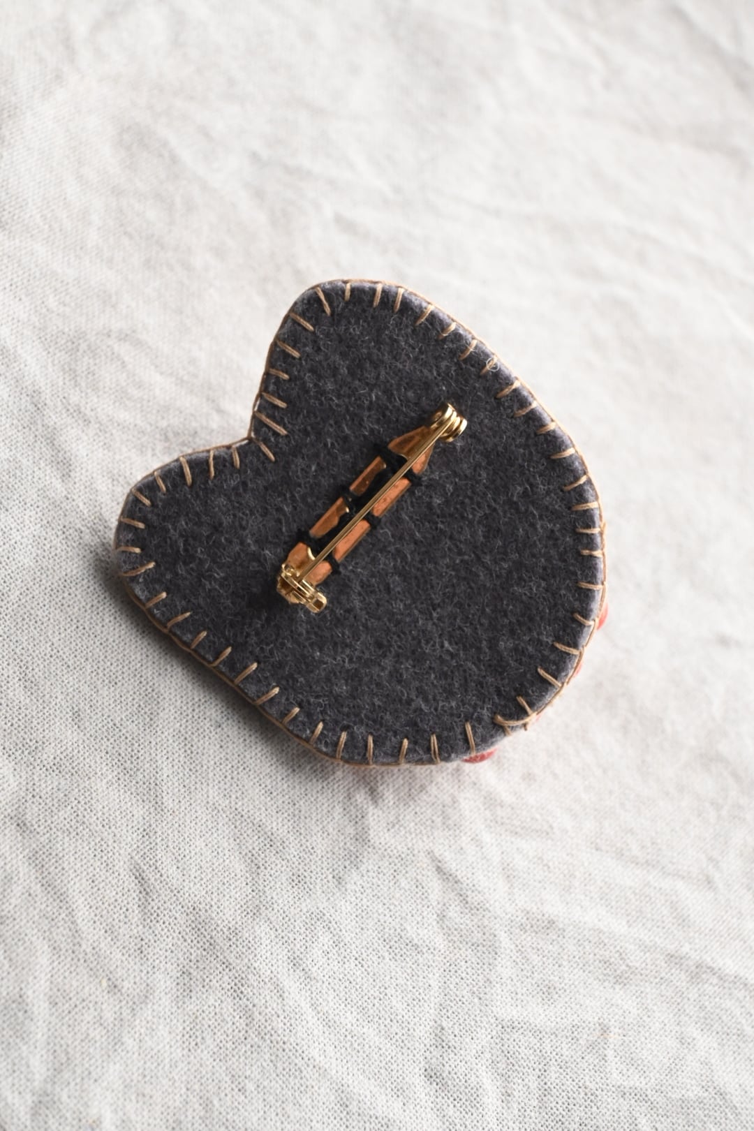 おでかけに連れていくもよし、布につけて飾るもよしのブローチピンタイプ。