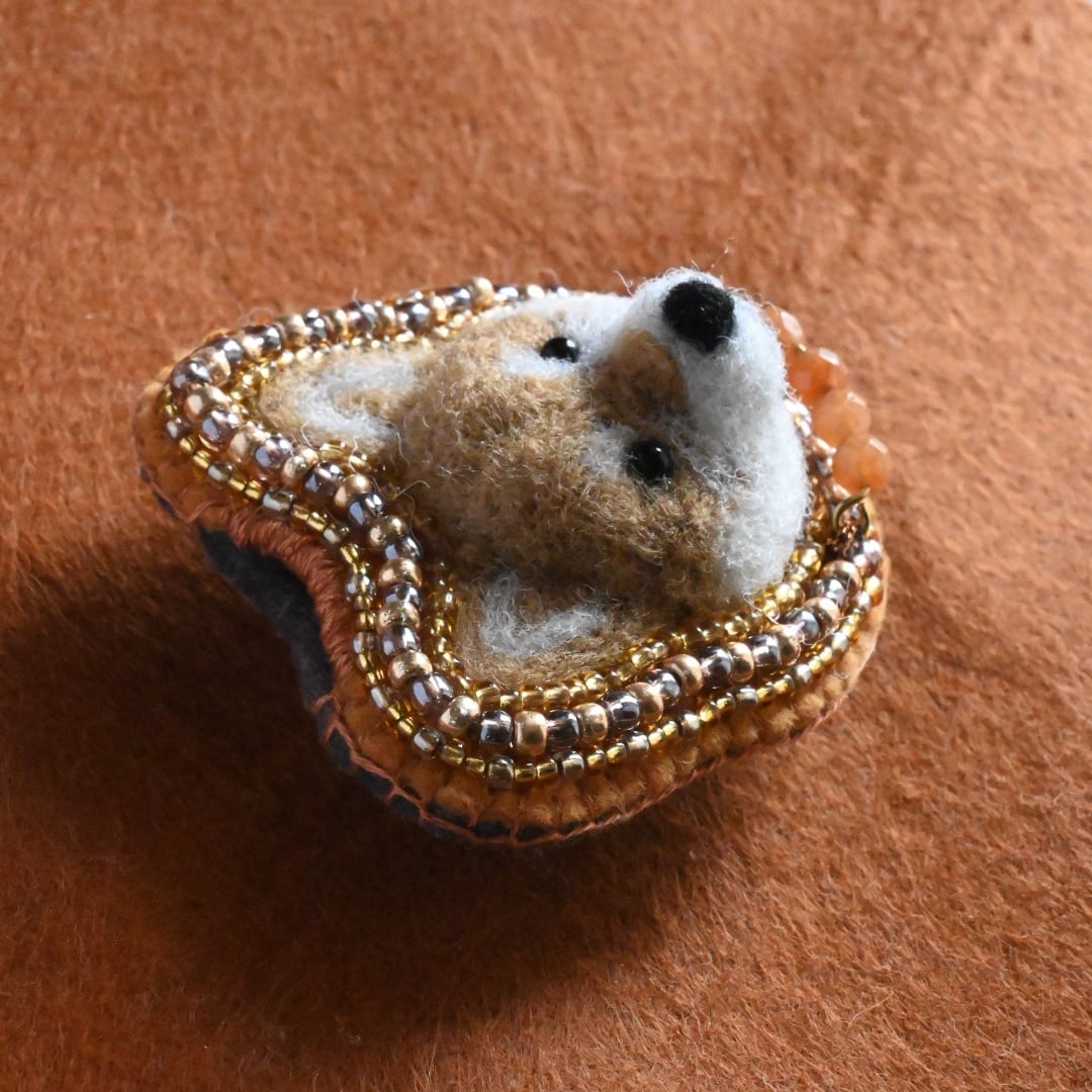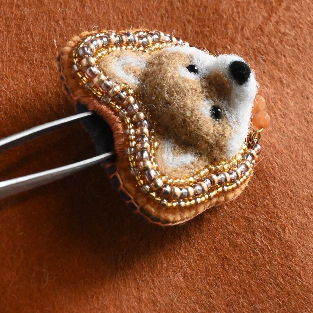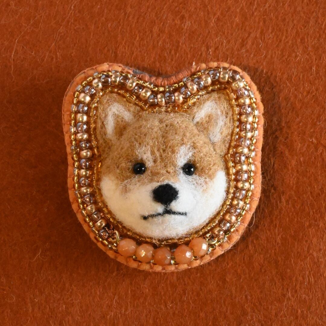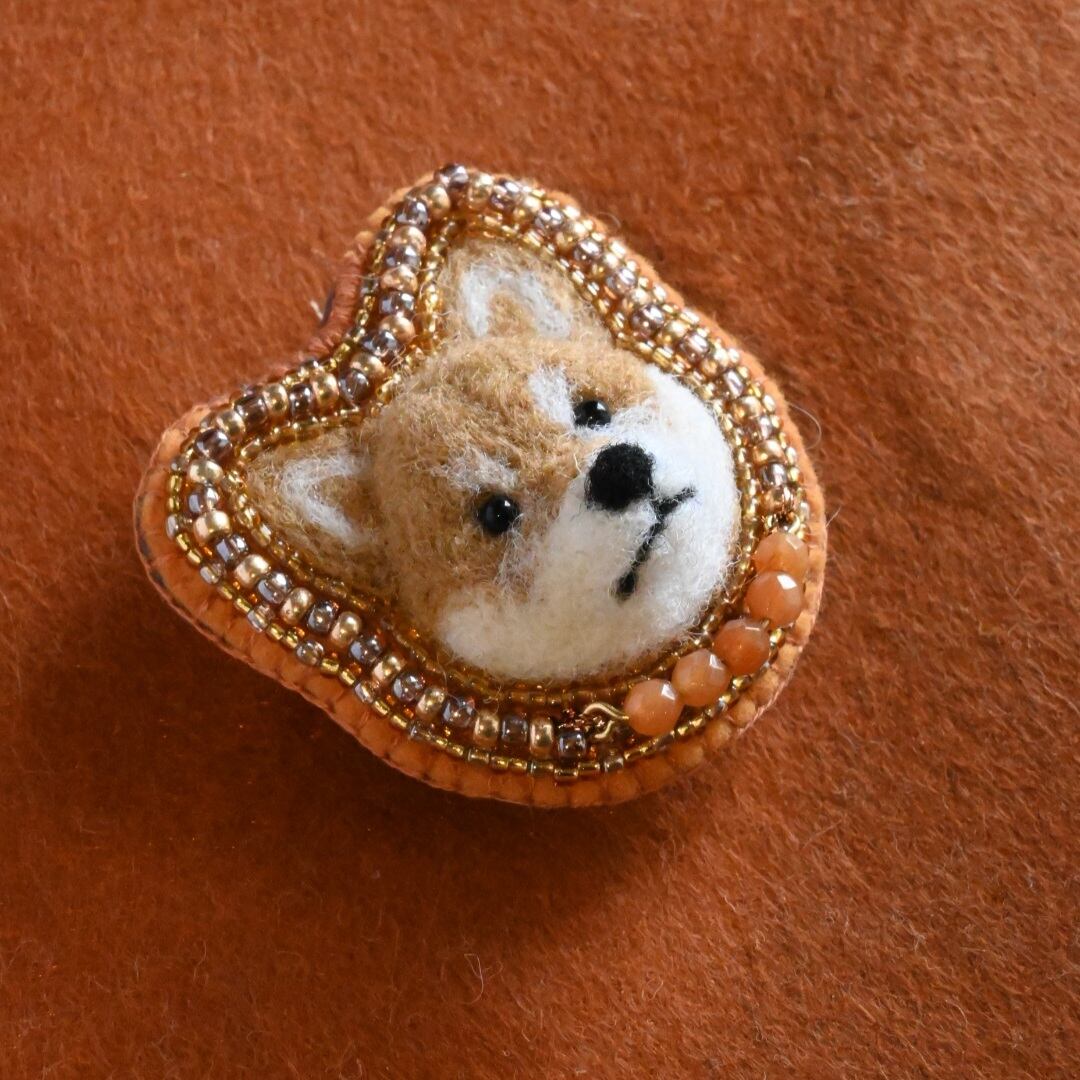 ※ブローチピンやビーズ、天然石を使用しております。ウールの匂いに柴犬が引き寄せられる可能性がございますが、柴犬に取られないように御注意ください。誤飲ダメ絶対。