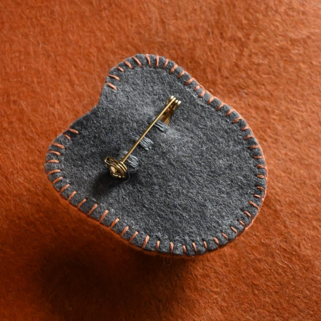 おでかけに連れていくもよし、布につけて飾るもよしのブローチピンタイプ。