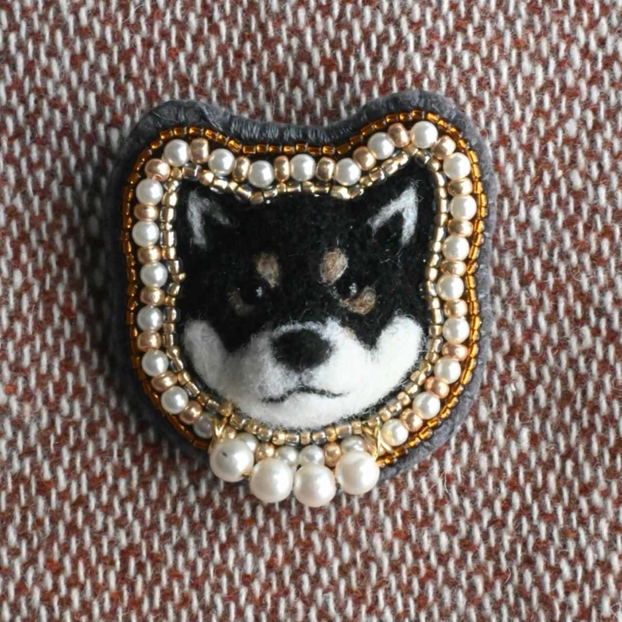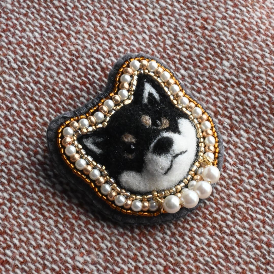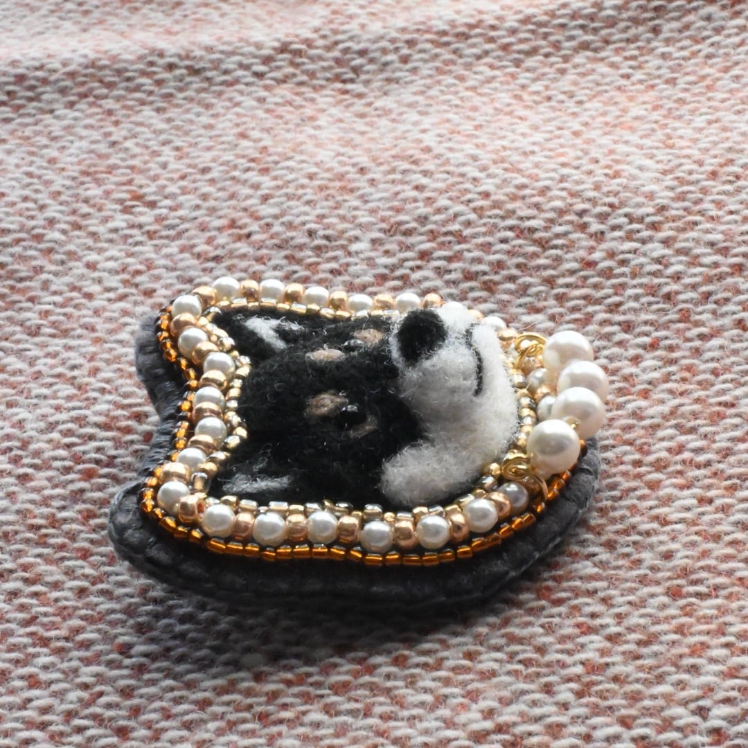 ※ブローチピンやビーズ、天然石を使用しております。ウールの匂いに柴犬が引き寄せられる可能性がございますが、柴犬に取られないように御注意ください。誤飲ダメ絶対。