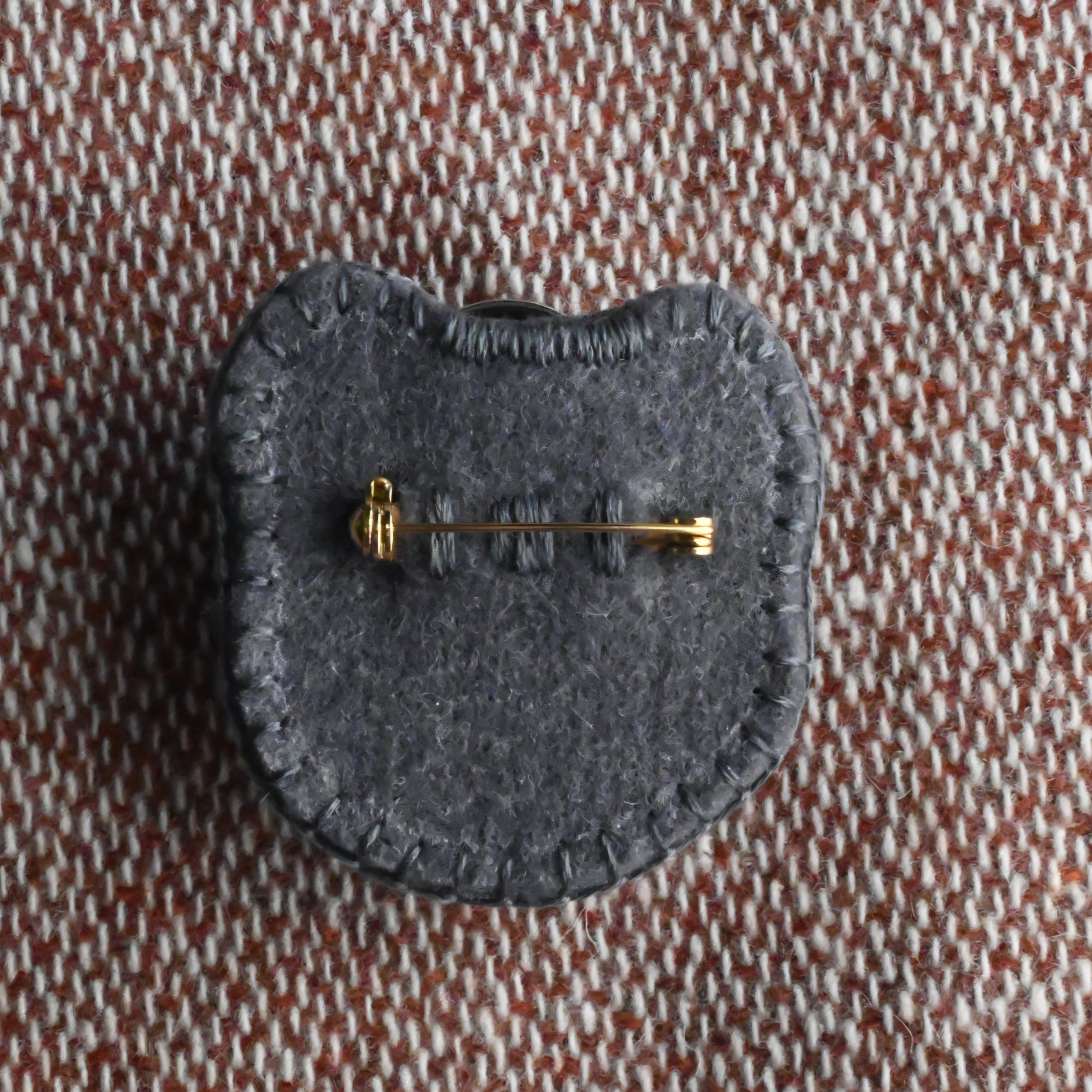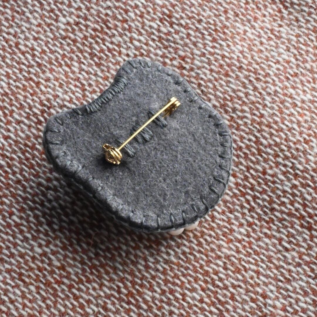 おでかけに連れていくもよし、布につけて飾るもよしのブローチピンタイプ。