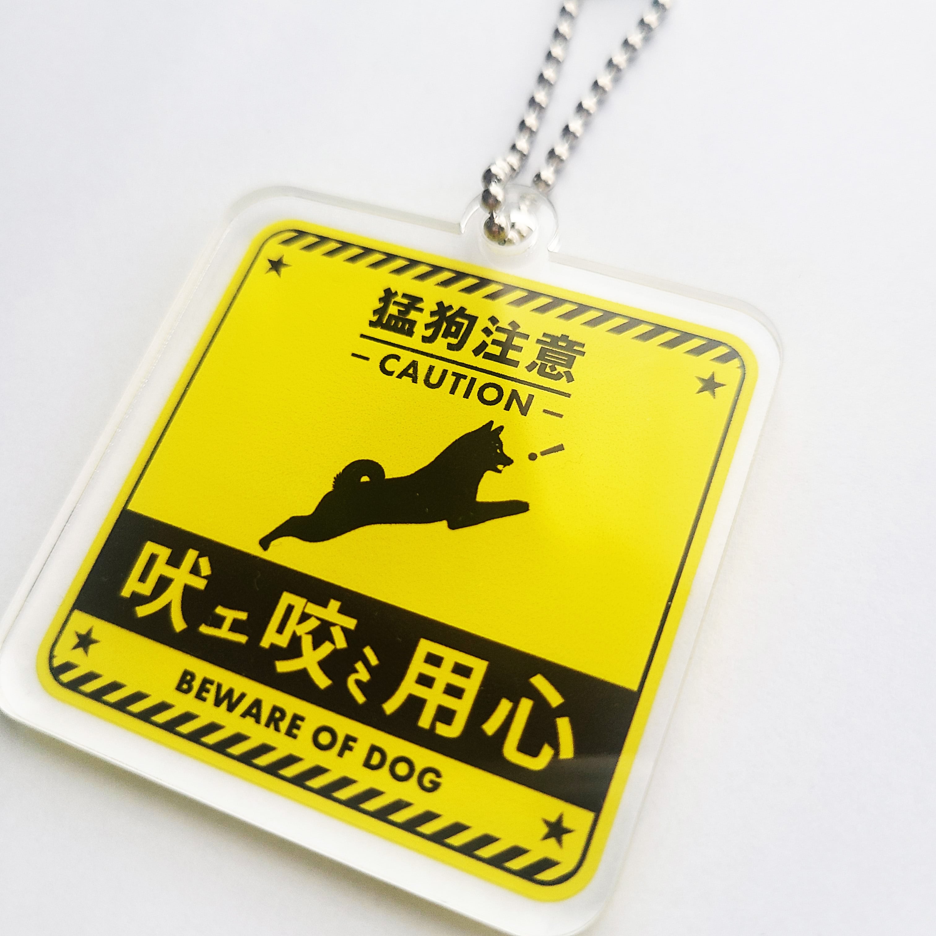 猛狗注意 クリアキーホルダーver2【6cm】(吠え咬み用心)