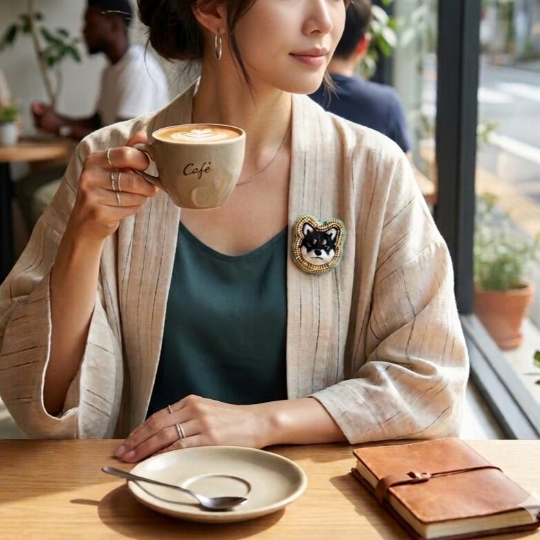 ※ブローチピンやビーズ、天然石を使用しております。ウールの匂いに柴犬が引き寄せられる可能性がございますが、柴犬に取られないように御注意ください。誤飲ダメ絶対。